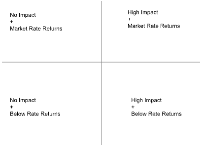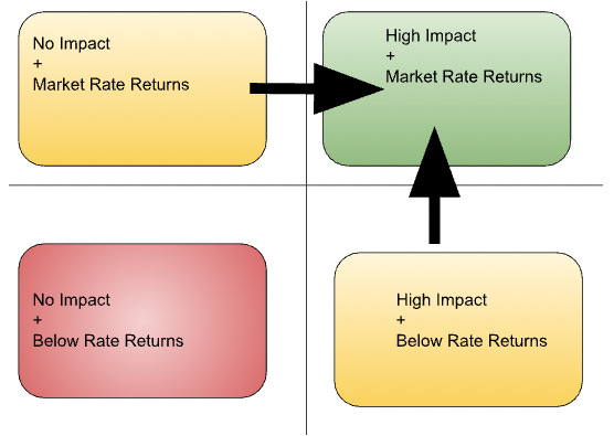 From here, it would be tempting to prescribe that we maximize companies in the top-right quadrant. Impact gets maximized; everyone gets rich; no one has to compromise.